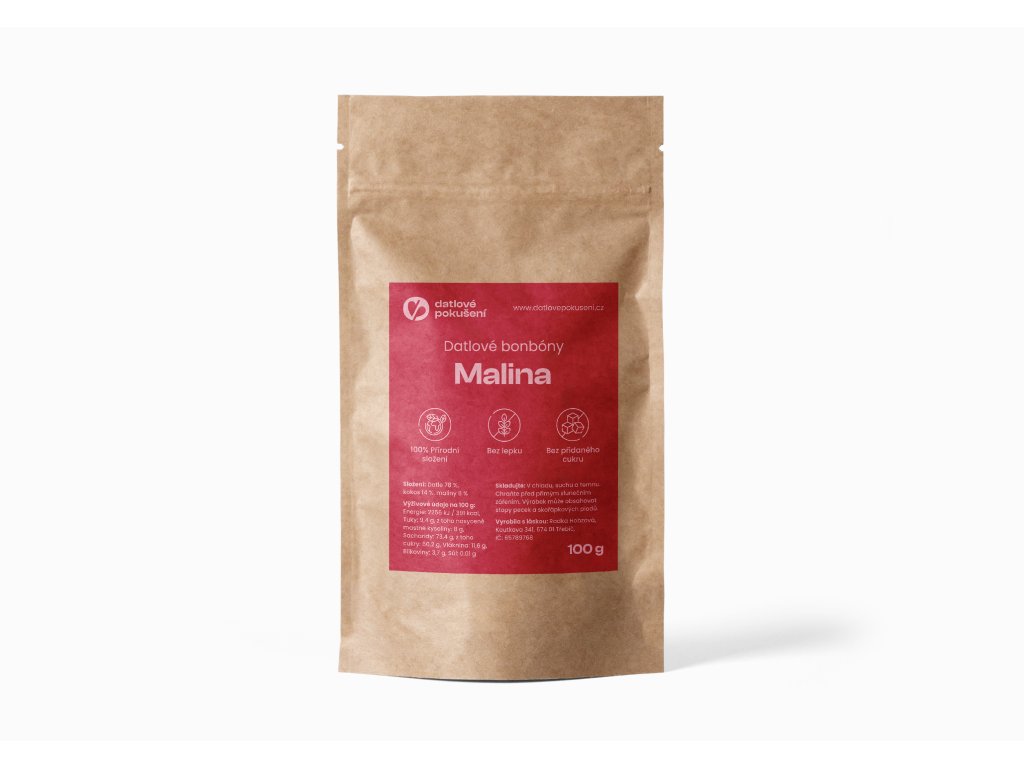 Datlové bonbóny s malinami spojují přirozenou sladkost měkkých datlí s intenzivní, osvěžující chutí šťavnatých malin. Lyofilizované maliny přinášejí autentický ovocný zážitek, který potěší každého milovníka ovoce, a dodají bonbónům lehce kyselý nádech, který je naprosto neodolatelný.